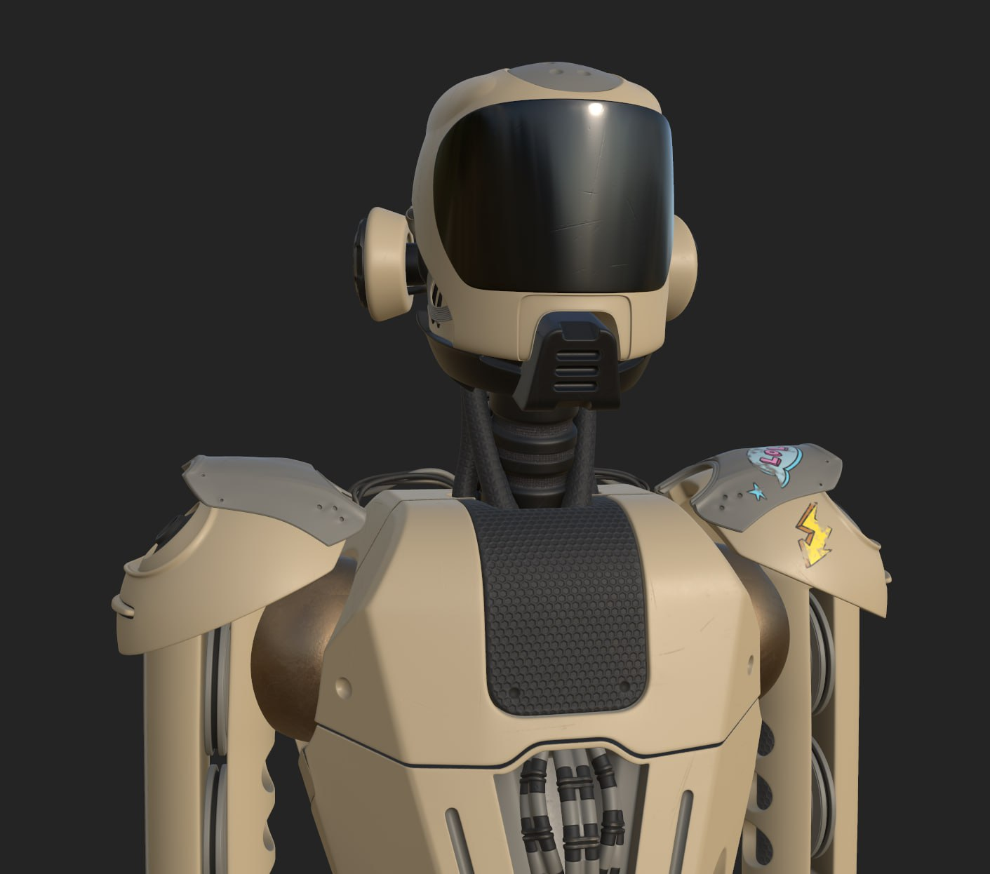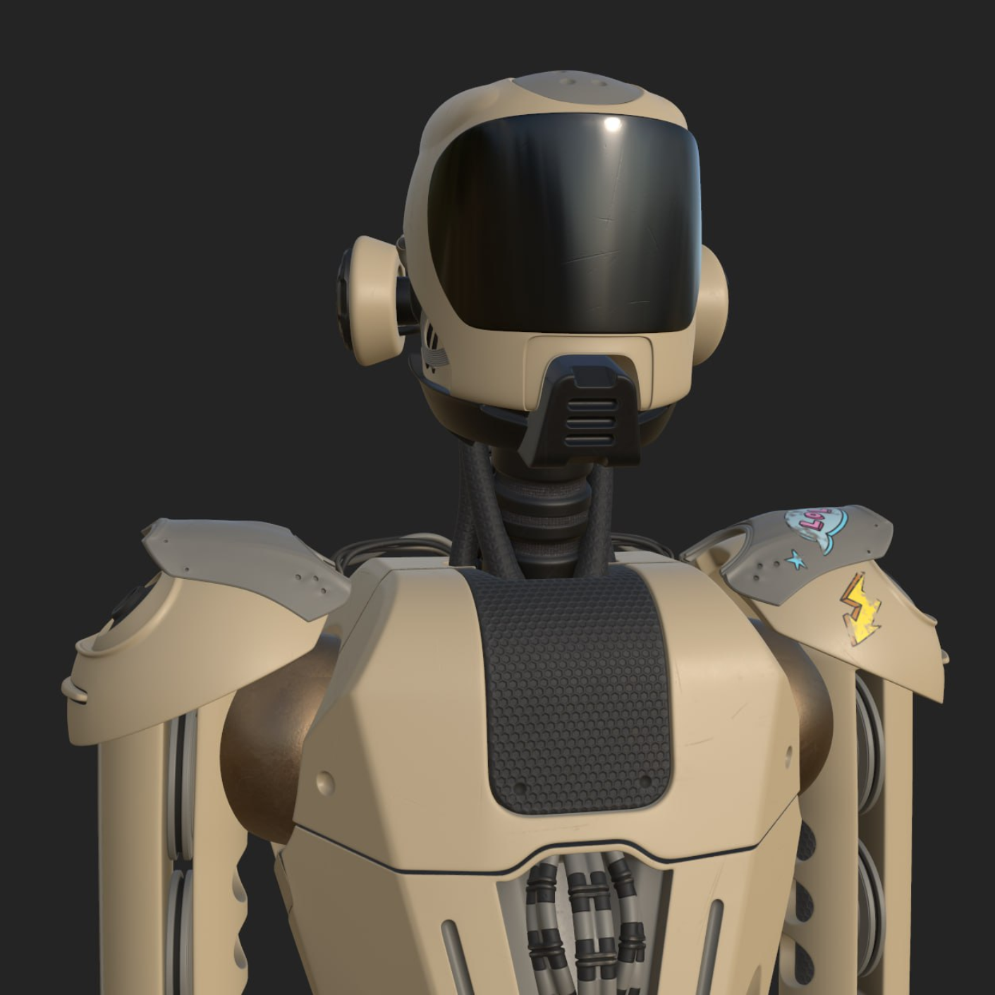 - Surface imperfections: subtle scratches, dust, and smudges that give the robot physical history.
